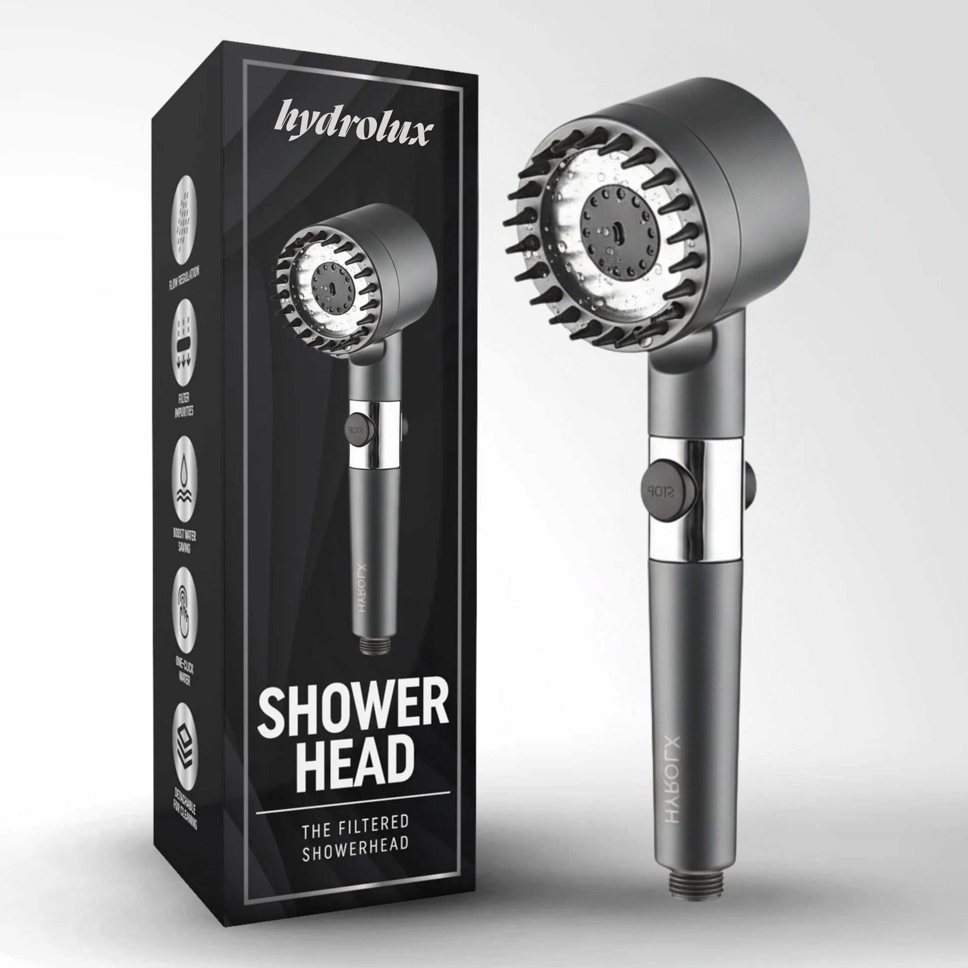 HydroLux® | Cabezal de ducha Alta Presión y Filtro de Agua